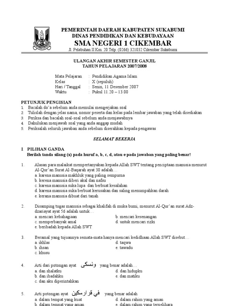 Semester ganjil pendidkan agama islam dan budi pekerti k13 edisi revisi kelas xii untuk siswa sma/ma posingan ini, berisikan materi soal . Posted in umum tagged contoh soal hots agama islam sma pai kelas xii soal agama islam kelas 12 semester 2 dan kunci . Download soal pts/uts pendidikan agama islam kelas xii semester 1 sma/ma. Pendidikan ilmu agama islam,,, merupakan suatu hal yang dapat mencakup dan membentuk ahklah dan budi pekerti dalam kehidupan masa yang akan . Berikut ini adalah kisi kisi soal pretest ppg 2018 yang.